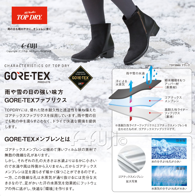 TDY3729HA AF3729 TOPDRY ロングブーツ 全天候快適 防水 レディースシューズ トップドライ アサヒシューズ 雨や雪の日の強い味方 ゴアテックスファブリックス 送料無料