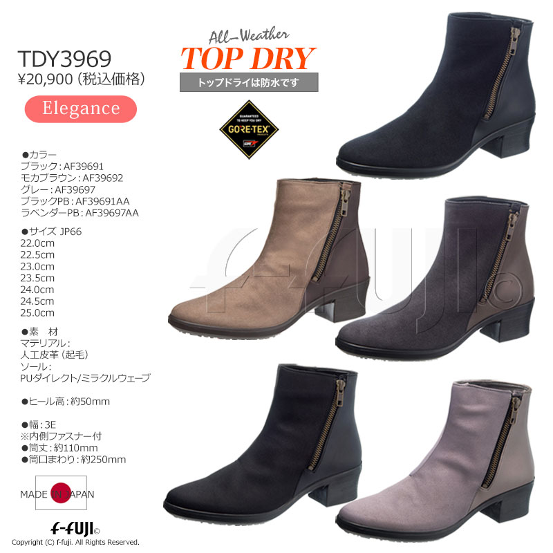 TOPDRY TDY3969 ブーツ トップドライ 全天候快適 防水 レディースシューズ アサヒシューズ 雨や雪の日の強い味方 ゴアテックスファブリックス 送料無料