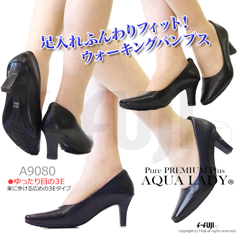 レディースパンプス AQUA LADY A9080 3E アクアレディ 幅広 本革 女性 婦人 オフィス リクルート 就活 通勤 フォーマル プレーン 黒 冠婚葬祭 送料無料